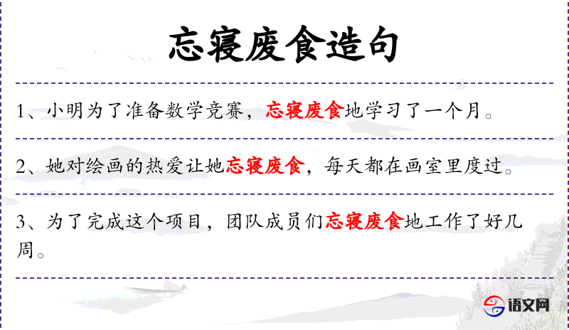 - 忘寝废食:形容非常专心努力,不顾休息和饮食。