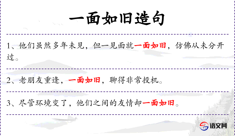 1. 【一面如旧】 - 初次见面就象老朋友一样。