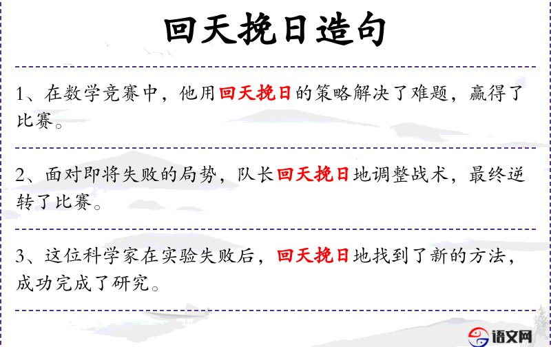 - “回天挽日”源自**古代文学,常用来形容在绝境中力挽狂澜的英雄行为。