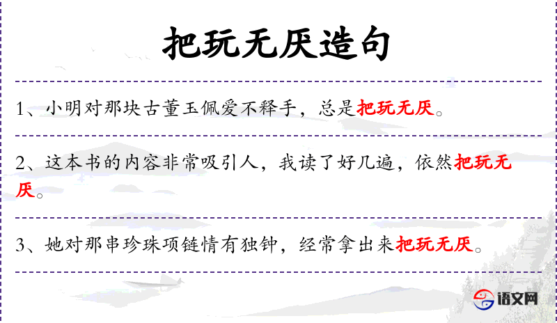 - 把玩无厌:继续玩而不会感到厌倦。