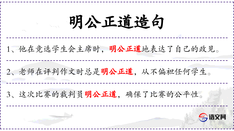 - 状语:在辩论赛中、明公正道地、没有互相攻击