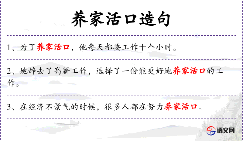 - 养家活口:维持生计、养家糊口