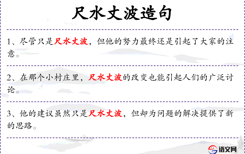 - 尺水丈波:源自**传统文化,比喻微小的帮助。