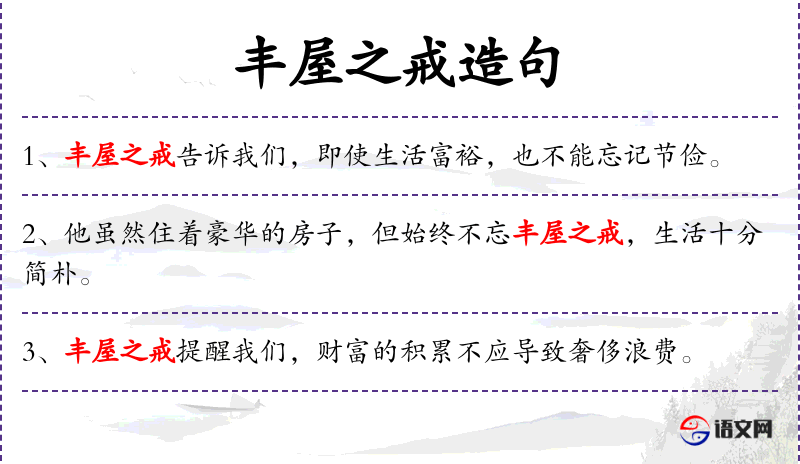 - 丰屋之戒:a warning against extravagance (丰屋:luxurious house; 之戒:warning)