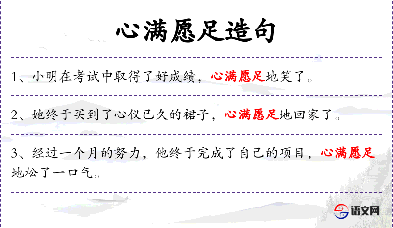 - 文化意义:句子中的“心满愿足”体现了**文化中对满足和和谐的追求。