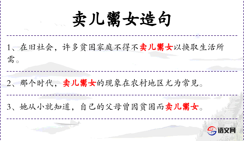 - 卖儿鬻女:成语,指家庭因贫困而被迫出卖子女。