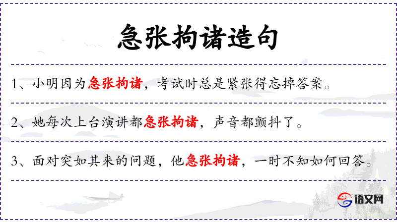 - 急张拘诸:形容紧张、不安的状态。
