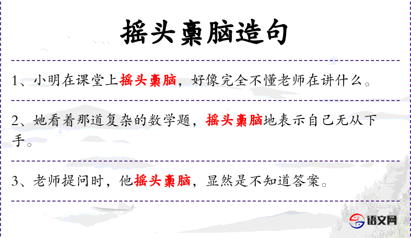 句子:“小明在课堂上摇头稾脑,好像完全不懂老师在讲什么。”
