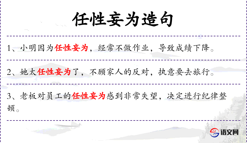 - 任性妄为:形容人行为不受约束,任意妄为。