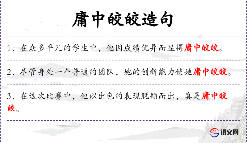 - 庸中皎皎:成语,意思是平凡中显得非常突出。