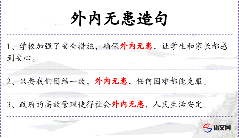 - 国家外内无患:国家内外都没有问题或威胁。