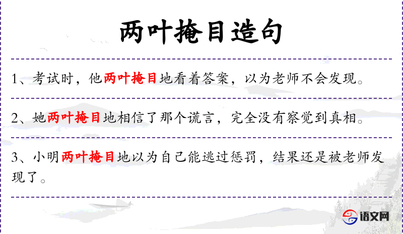 - 两叶掩目地:成语,比喻因小失大,只看到局部而忽视整体。