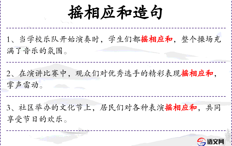 1. 【摇相应和】 遥:远远地;应:照应。远远地互相联系,互相配合。