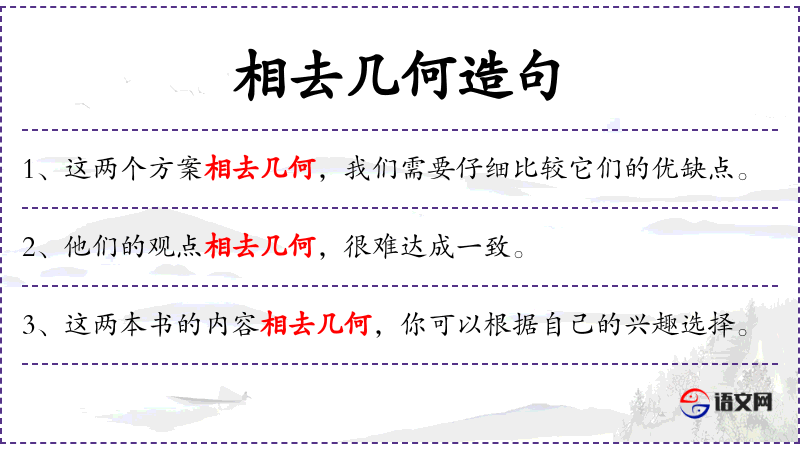 5. 【相去几何】 去:距离;几何:多少。彼此之间相关多远呢?表示差别不大。