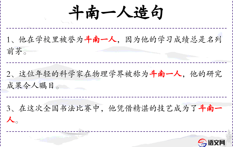 句子:“在数学竞赛中,他以卓越的解题能力成为了斗南一人。”