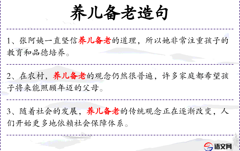 - 养儿备老:传统观念,指养育子女以备将来养老