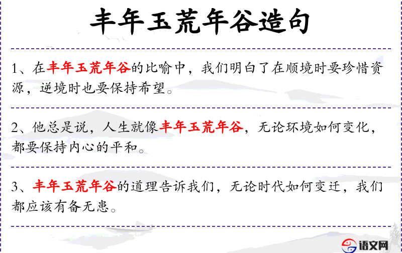 - 他常常以丰年玉荒年谷的比喻来提醒我们,即使在最艰难的时刻,也要坚持希望和努力。
