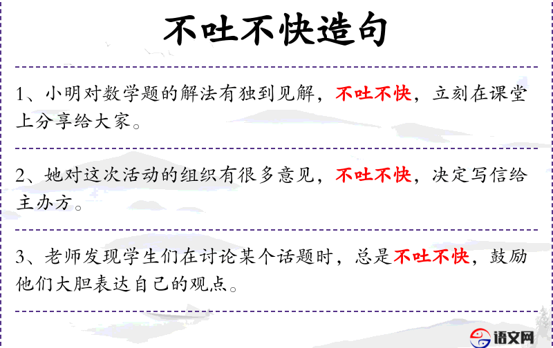 1. 【不吐不快】 吐:倾诉;快:痛快。不说出来就不痛快。
