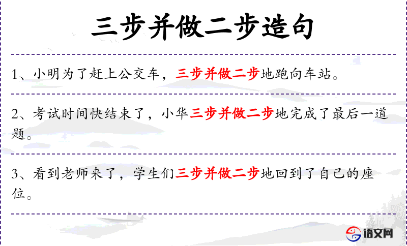 1. 【三步并做二步】 - 形容快步前进的样子。