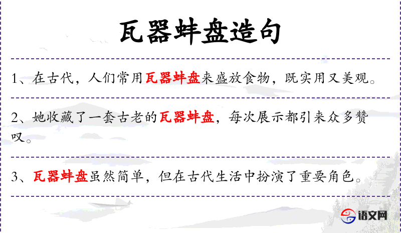 2. 【瓦器蚌盘】 - 泛指粗陋的食器。形容生活俭朴。