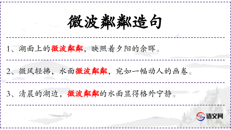 - “湖面微波粼粼”:主语是“湖面”,谓语是“微波粼粼”。