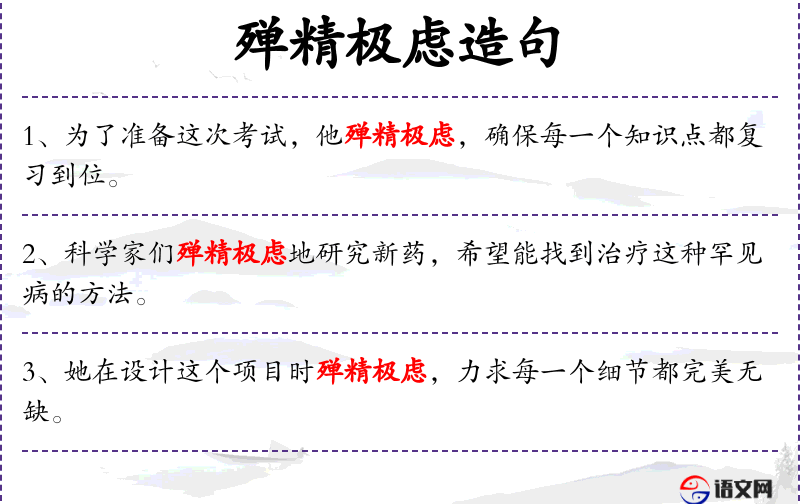 3. 【殚精极虑】 - 犹殚思极虑。竭尽智谋与精力。