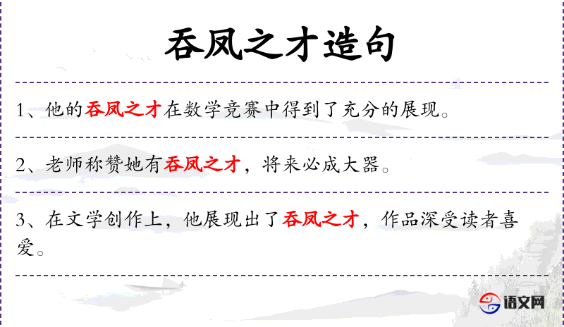 - 吞凤之才:这个成语源自**古代,形容人的才华非常出众,如同凤凰一般珍贵和稀有。