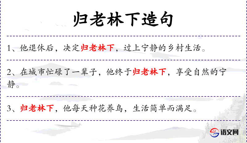 1. 【归老林下】 林下:指隐居之地。回到林间幽境安度晚年。