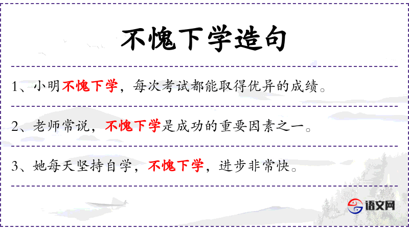 1. 【不愧下学】 - 不耻下问,虚心向地位低的人学习。