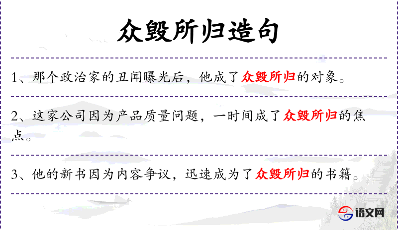 - 众毁所归:指被众人批评或诋毁。