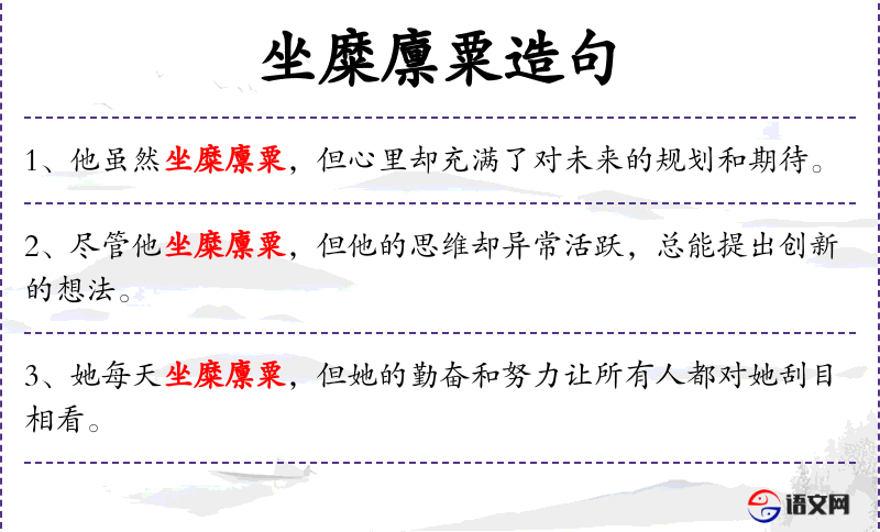 句子:“他虽然坐糜廪粟,但他的耐心和恒心让他在困难面前从不退缩。”