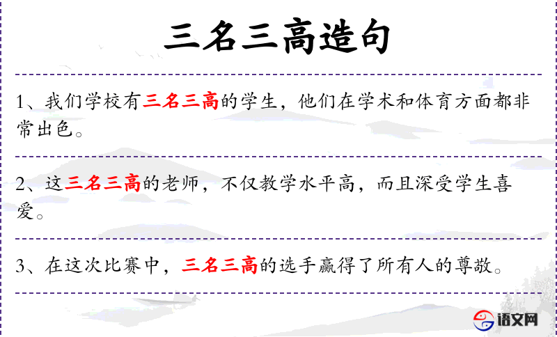 1. 【三名三高】 - 名作家﹑名演员﹑名教授和高工资﹑高稿酬﹑高奖金的合称。
