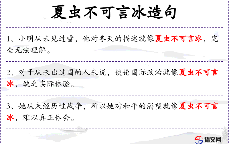 - 夏虫不可言冰:比喻无法理解或体验到的事物。