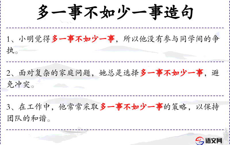 - 多一事不如少一事:成语,意思是避免麻烦,宁愿少做事情。