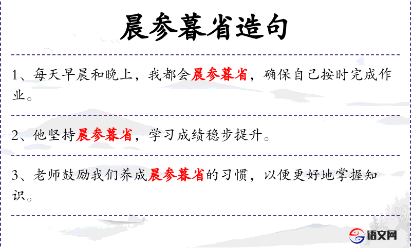 1. 【晨参暮省】 - 按礼节朝暮参拜问安。