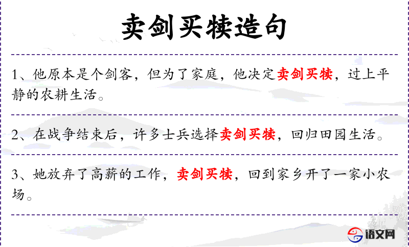 - 宾语:卖剑买犊,过上平静的农耕生活