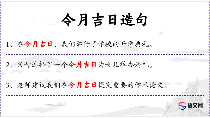 - 令月吉日:指吉祥的日子,常用于正式或重要的场合。