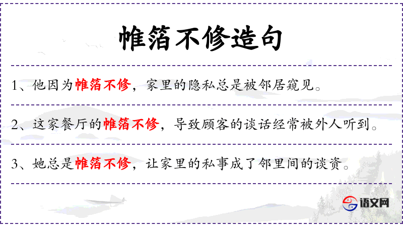 - 宾语:无明确宾语,但“帷箔不修”暗示了宾语是“帷箔”