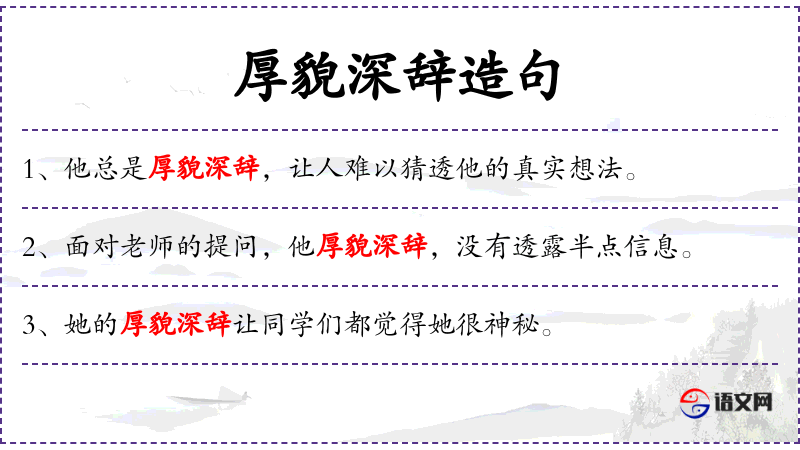 - 厚貌深辞:形容一个人外表严肃、言辞深沉,不易接近。