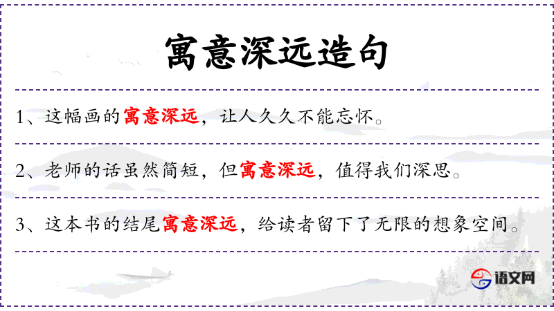 - 寓意深远:成语,表示话语中蕴含的含义非常深刻。