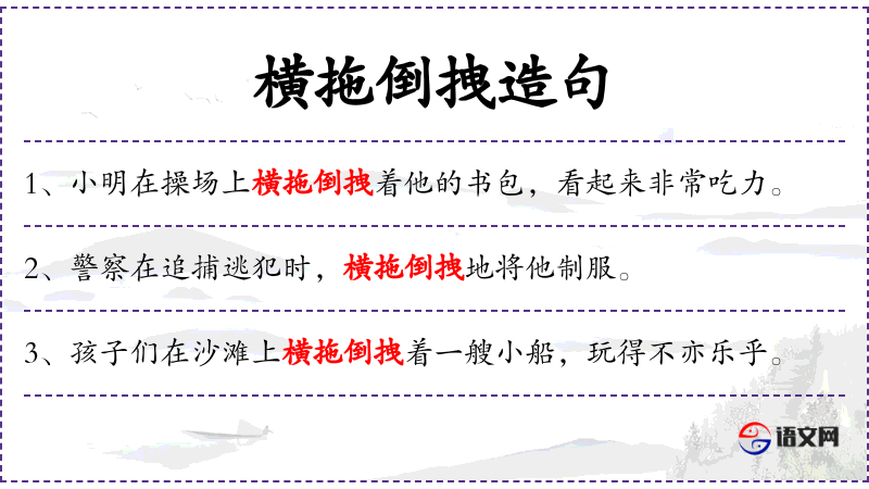 5. 【横拖倒拽】 - 拽:用力拉扯。指用暴力强拖硬拉。
