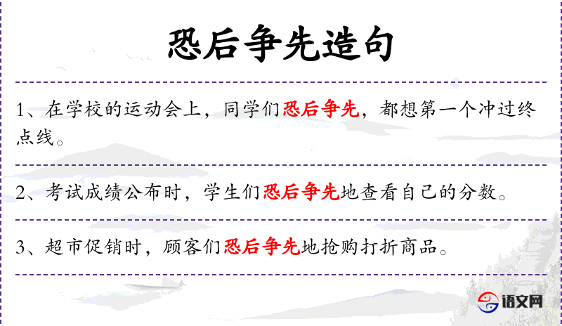 - 恐后争先:形容人们争先恐后,害怕落后。
