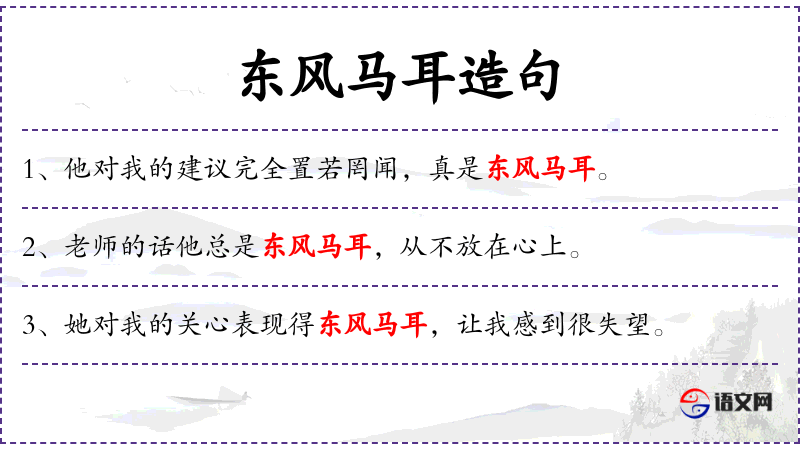 - 宾语:“东风马耳”