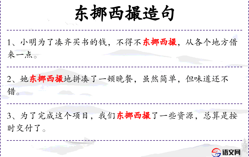- 相关成语:东挪西撮(四处筹措)