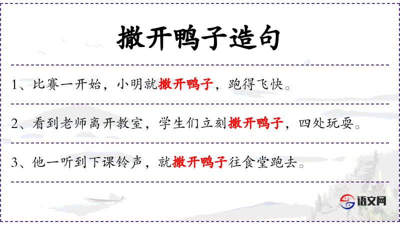 - 文化意义:“撒开鸭子”这个成语在**文化中常用来形容人跑得快,形象生动。