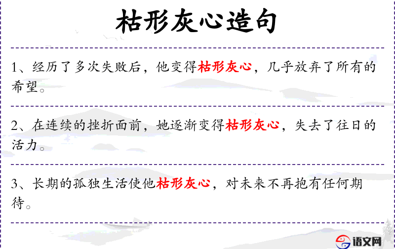 4. 【枯形灰心】 - 身体像枯木心如同死灰。形容极端消极。