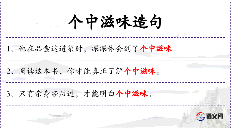 - 宾语:个中滋味