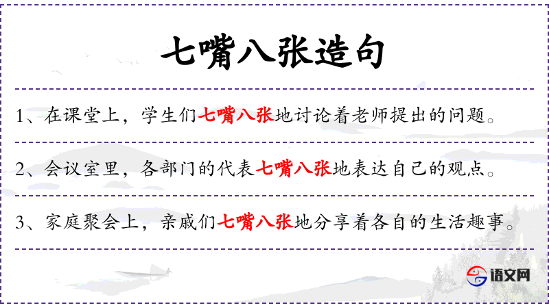 - 七嘴八张地:状语,形容学生们讨论时非常热烈、积极。