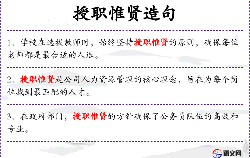 - 授职惟贤:指选拔和任命人员时只考虑其才能和品德。