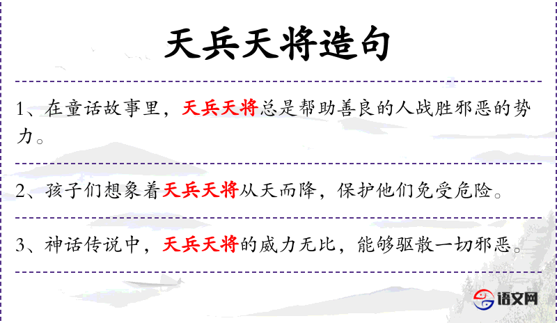 句子:“在童话故事里,天兵天将总是帮助善良的人战胜邪恶的势力。”